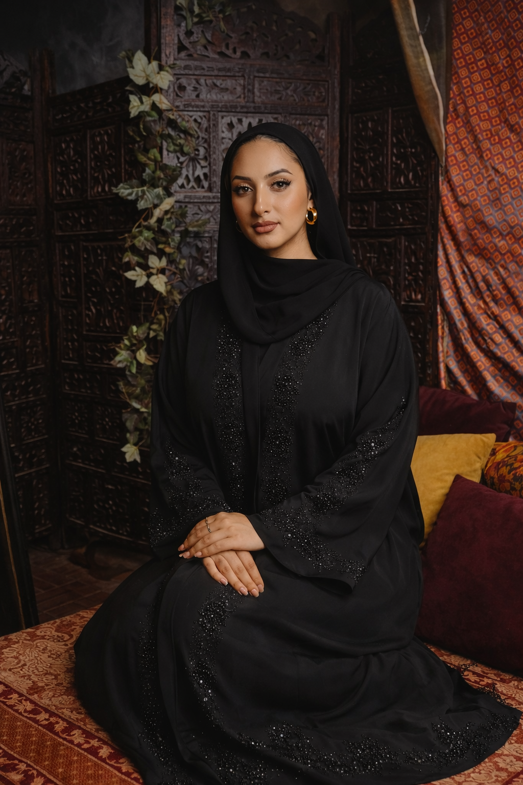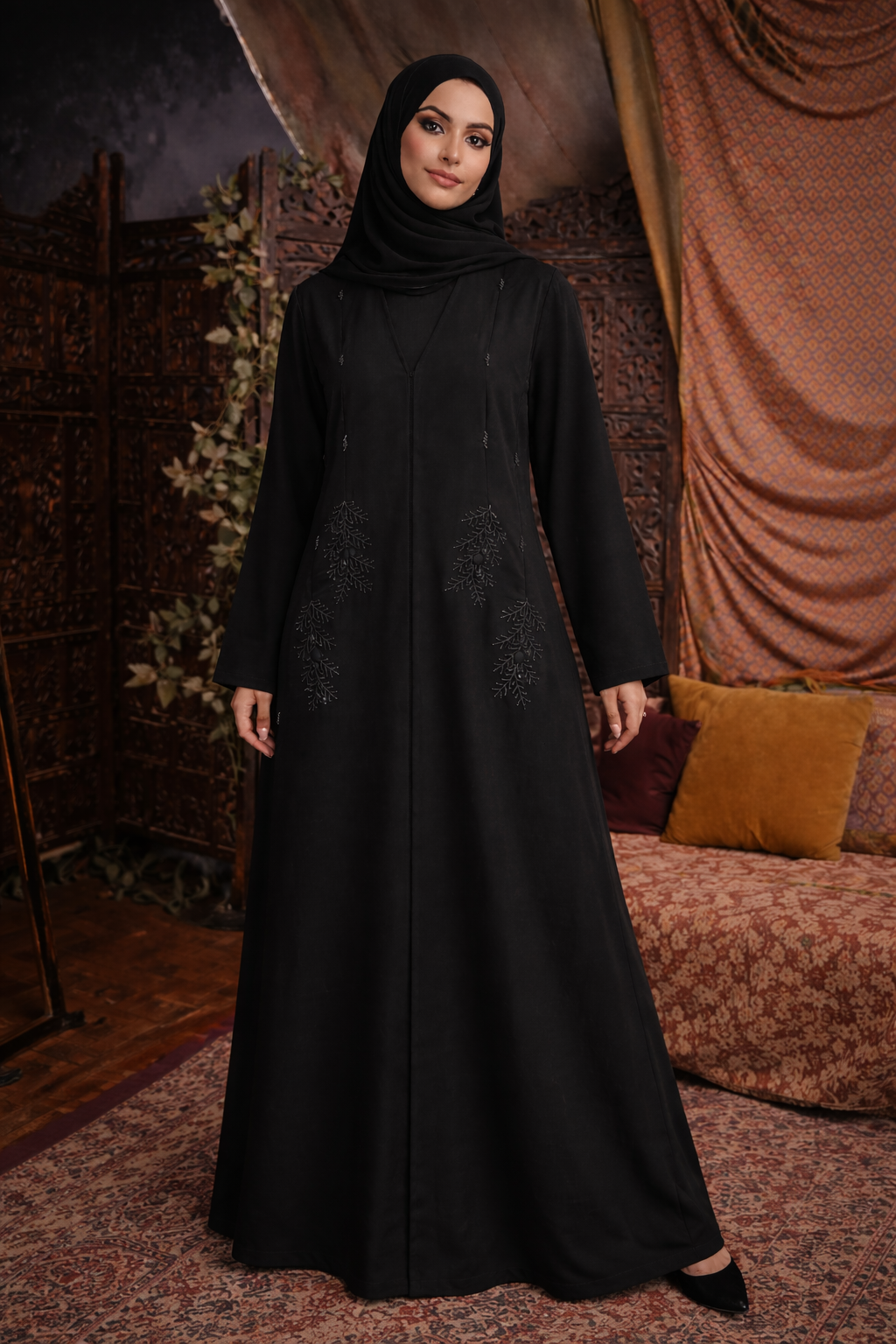 Black Beaded Swirl Abaya
