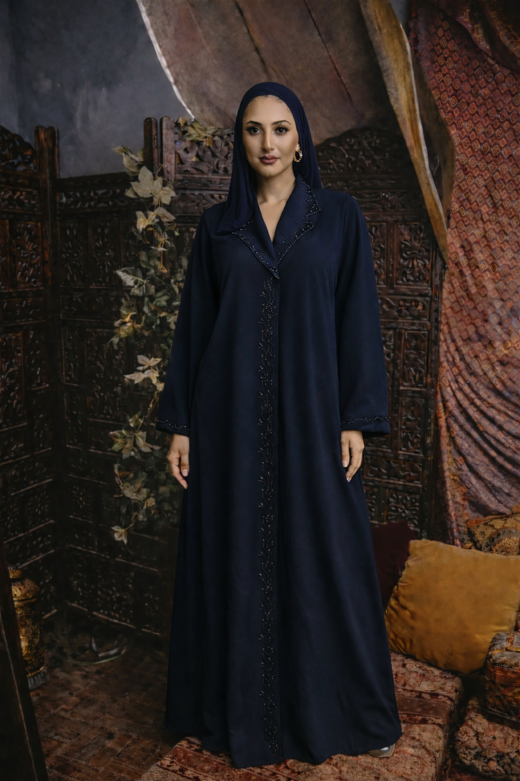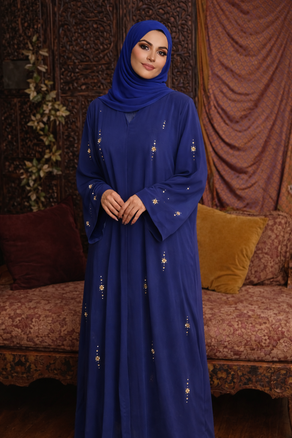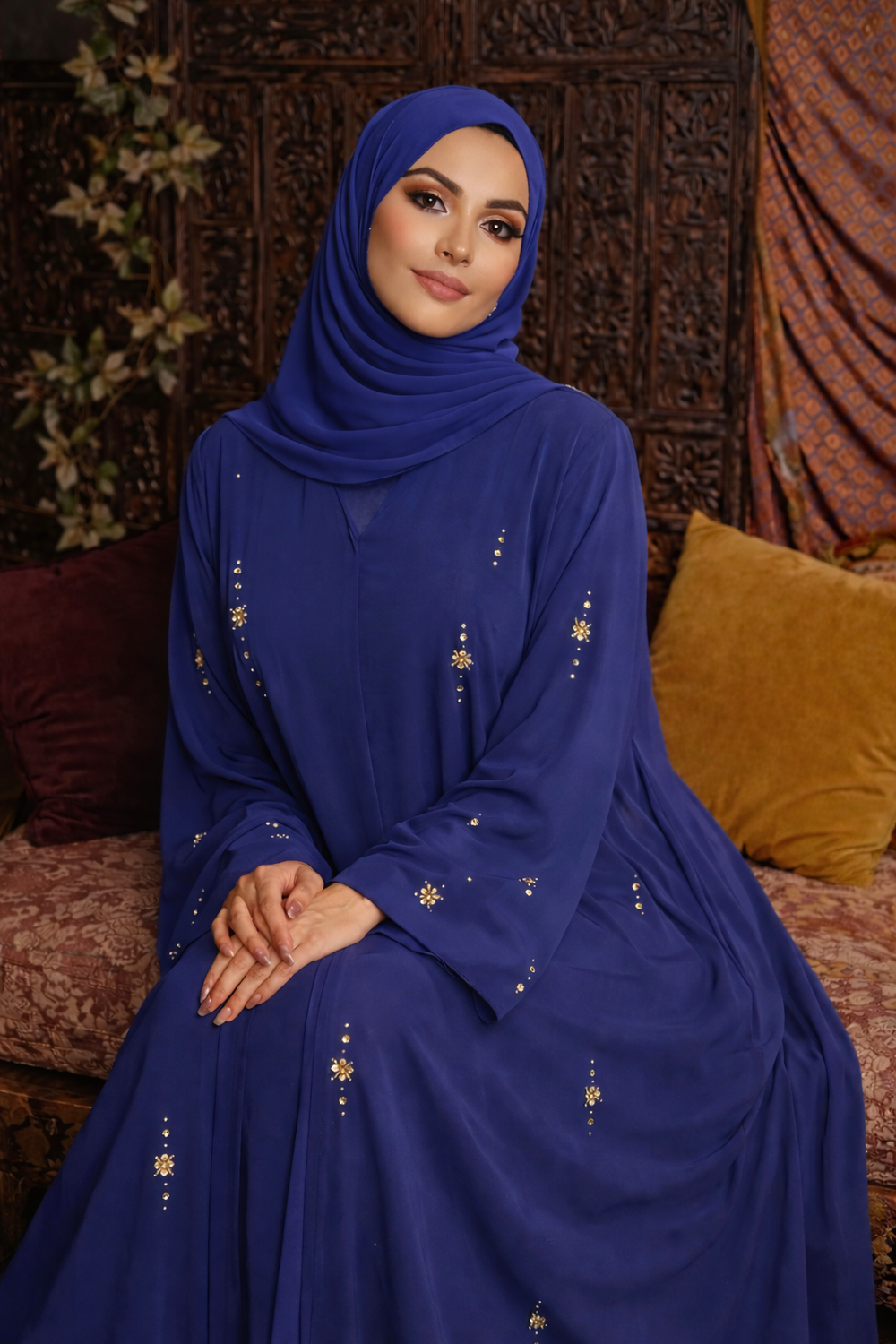 Navy Allover Floral Sequin Abaya
