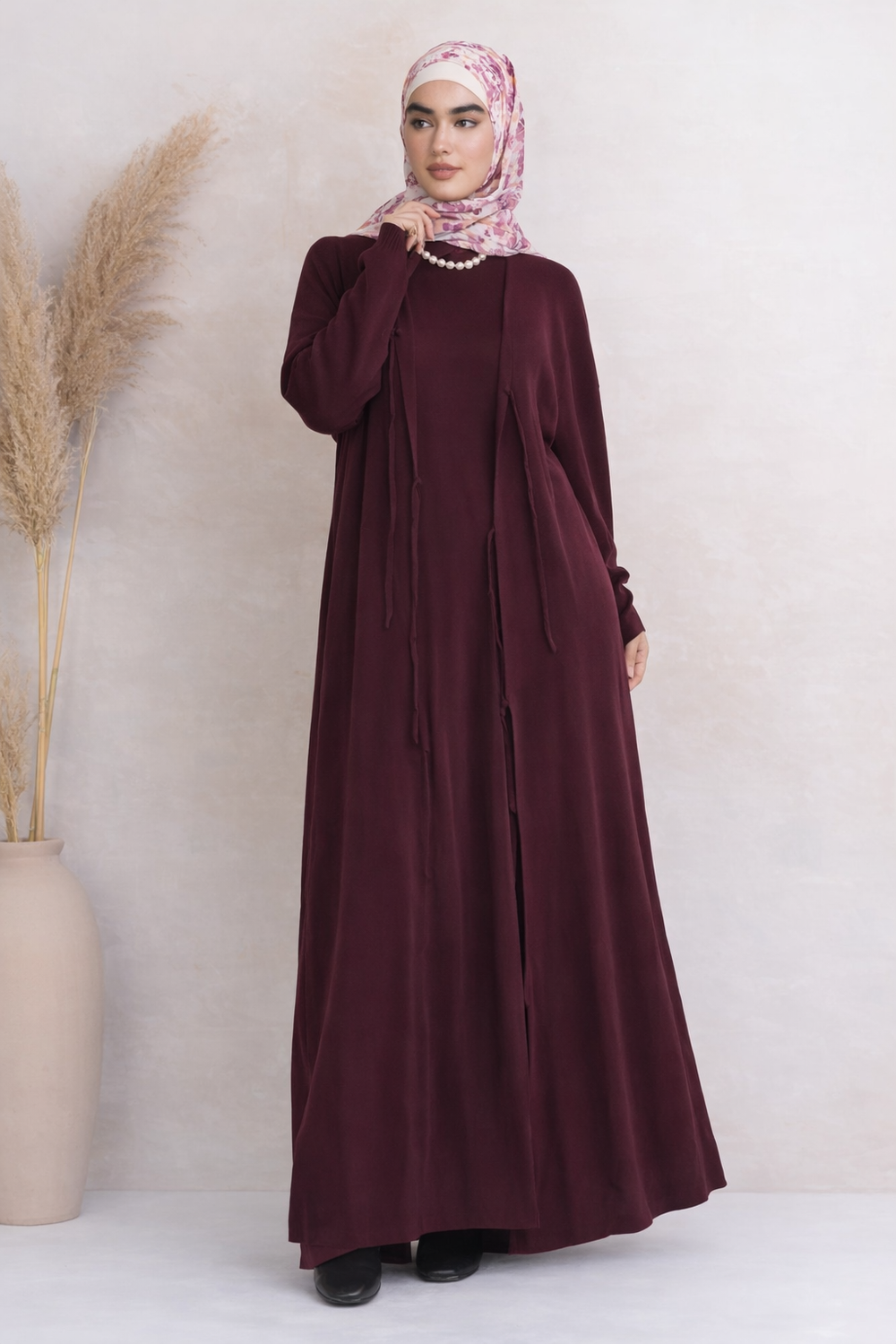 Side Pleated Open Abaya