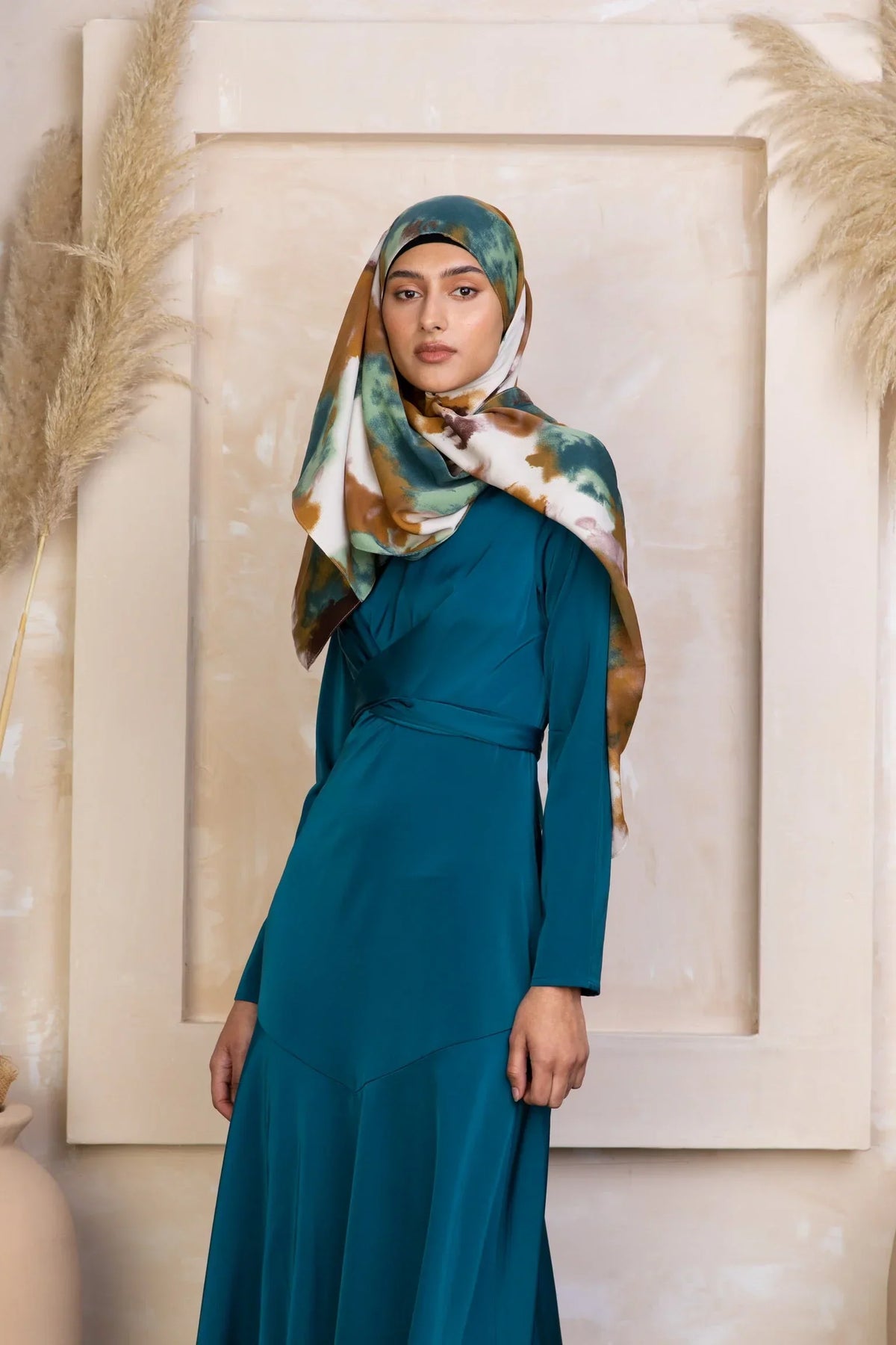 Urban Modesty - Sapphire Criss Cross Satin Maxi Dress