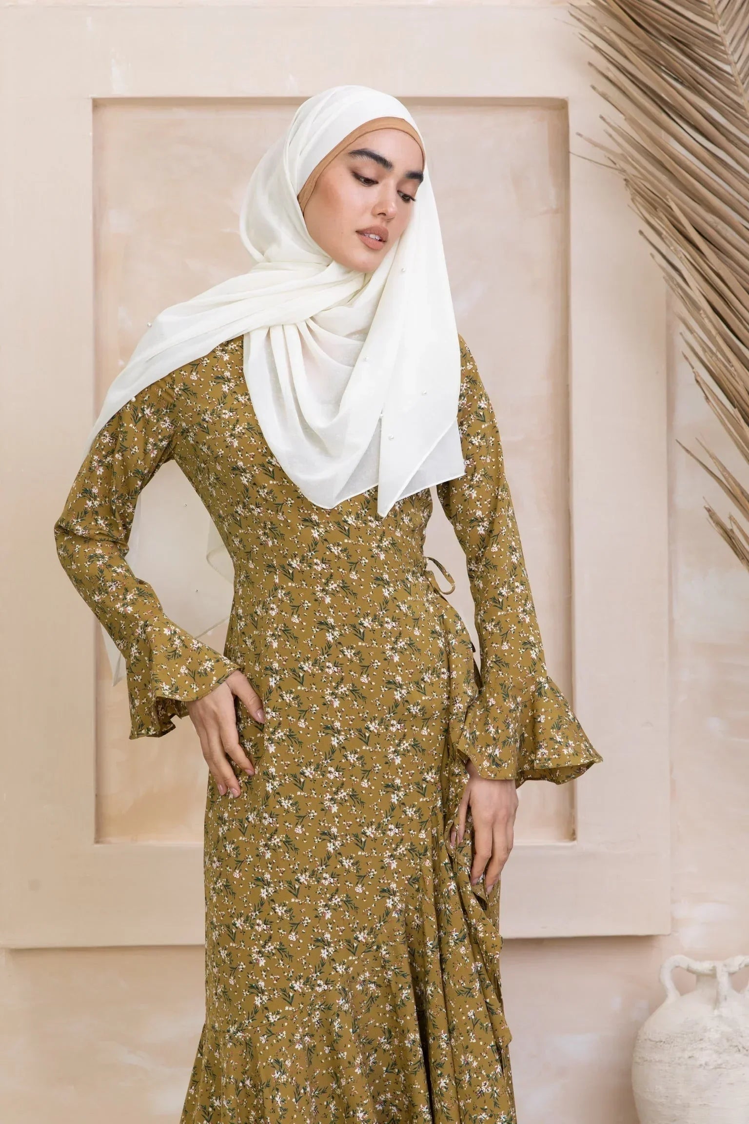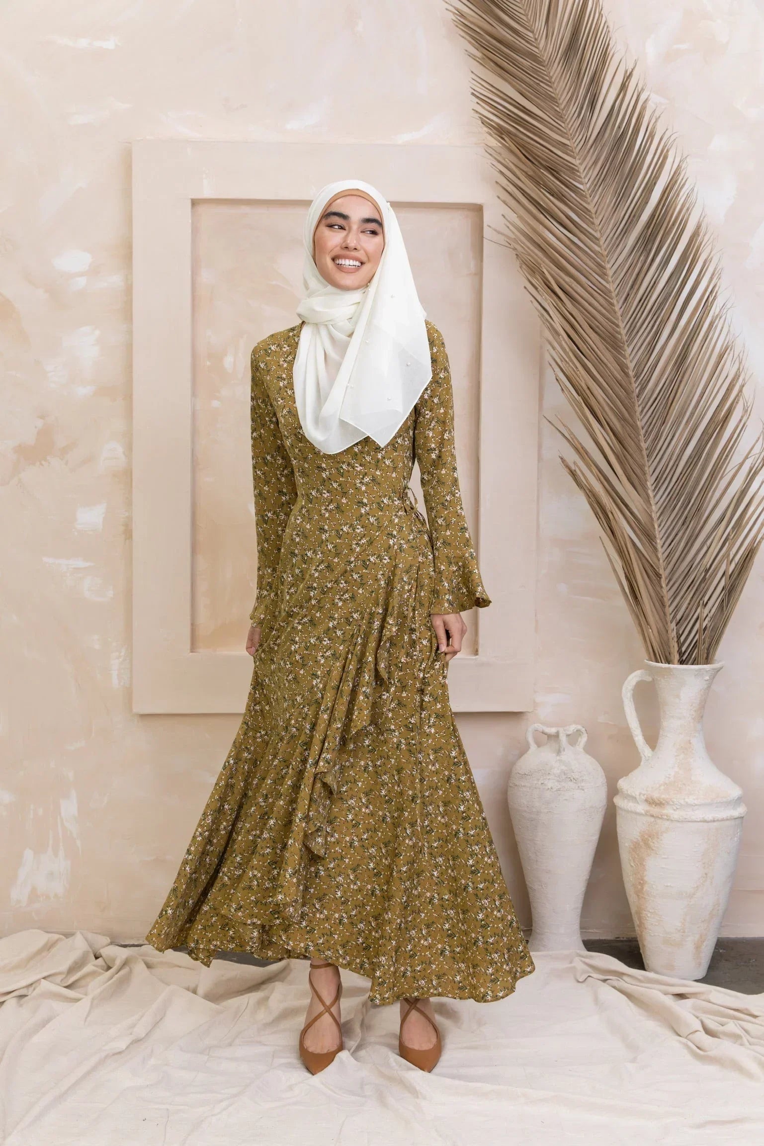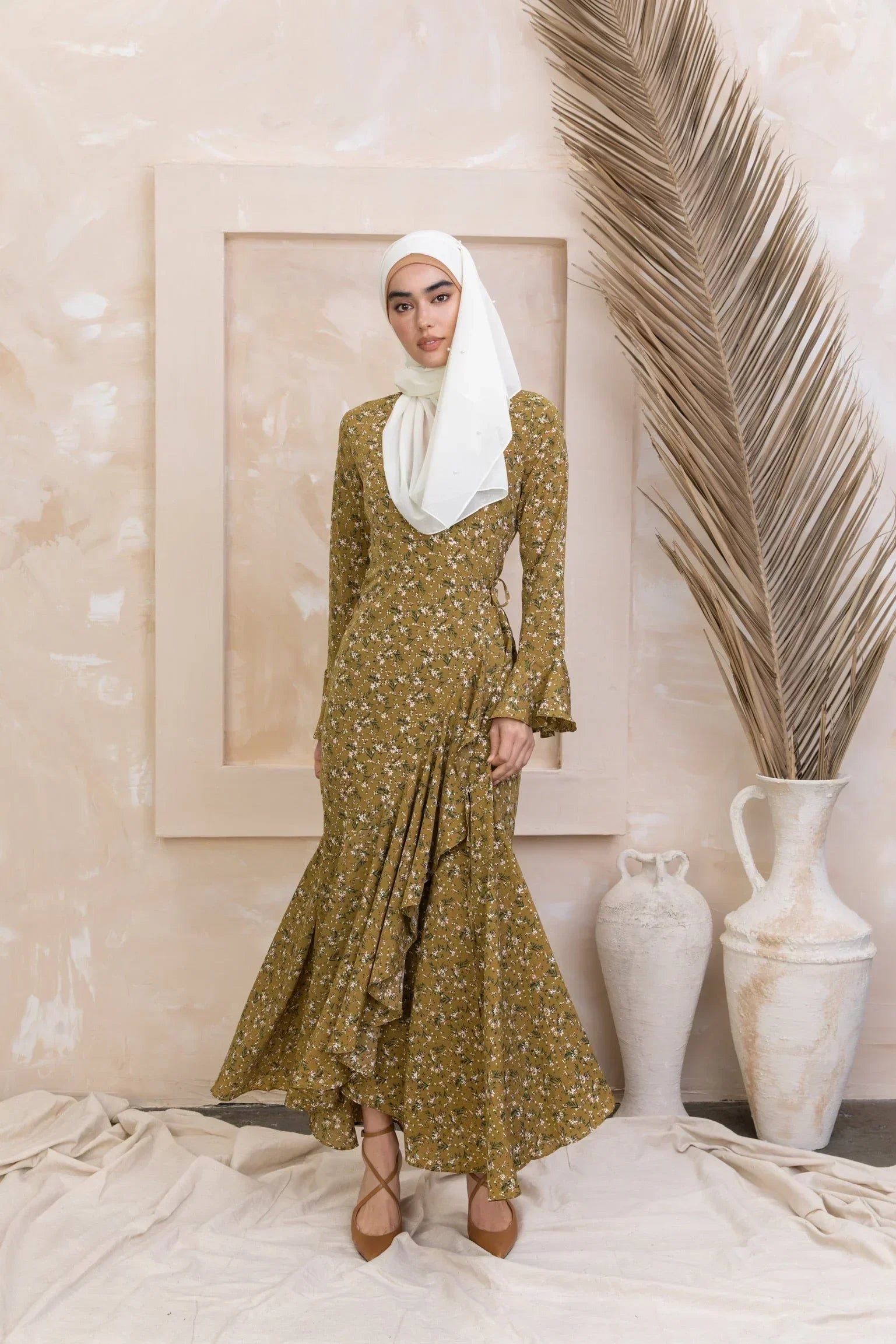Mustard Ruffle Wrap Maxi Dress